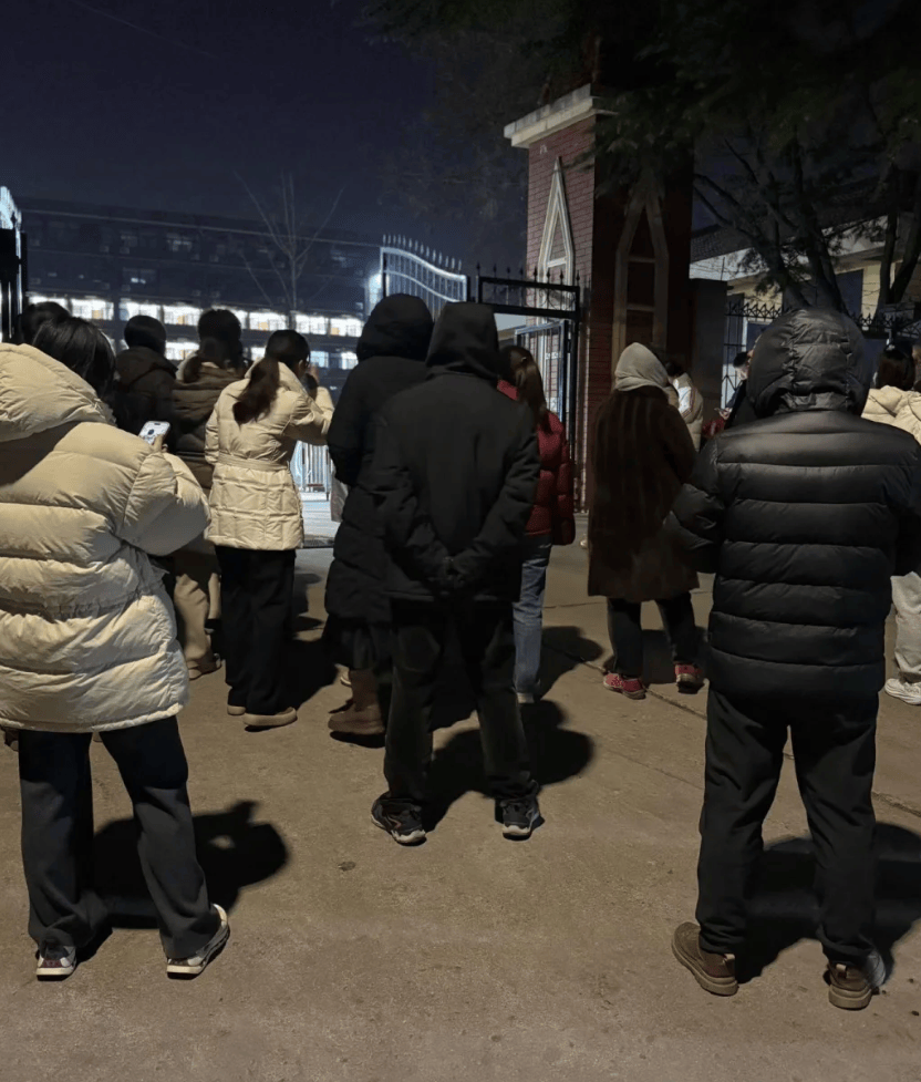 他不是一个人。在他前后,二十多位家长排成蜿蜒的队伍,在路灯下拉出长长的影子。